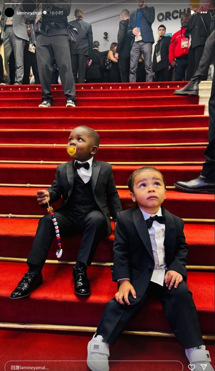 9月24日讯 亚马尔今天更新Instagram,晒出了弟弟在金球奖颁奖典礼的照片。