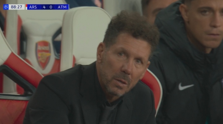 眼神要喷火😠马竞0-4追赶 阿森纳,场边西蒙尼表情复杂