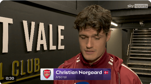 虎扑09月25日讯在2-0击败维尔港的赛后,阿森纳中场球员诺尔高接受天空体育采访。