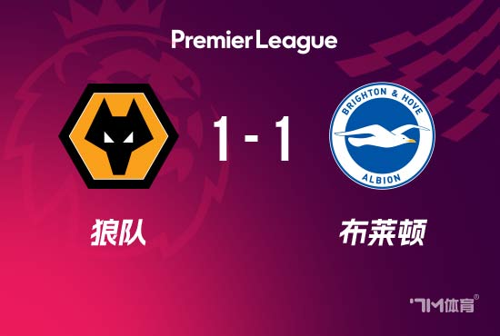 2025年10月5日21:00,2025-26赛季英超职业联赛 第7轮,狼队坐镇莫利诺克斯运动活动 场 迎战布莱顿。上半场穆涅西爆射造成维尔布鲁根乌龙,狼队暂1-0布莱顿;下半场,拉尔森中柱,范海克顶球破门,最终狼队1-1布莱顿,仍无缘本赛季首胜。 【赛事 关键事件】 第21分钟,狼队前场定位球机会,球被送入危险区域 ,双方争顶后维尔贝克顶球解围,危险区域 内穆涅西爆射,这球被维尔布鲁根扑了一下后击中横梁,随后弹下来又击中维尔布鲁根弹进了古代足球 门 ,狼队1-0布莱顿。 第86分钟,布莱顿策略 底线球开出,齐马斯得球传中,范海克高高跃起顶球攻门得手,布莱顿1-1狼队。 【赛事 焦点瞬间】 第7分钟,布莱顿前场策动攻势,一脚挑传送到危险区域 有点大,约翰斯通直接将球没收了。 第20分钟,巴莱巴违例 吃到警告 ,同时狼队主帅佩雷拉在场边抱怨被直红罚上看台。 第24分钟,