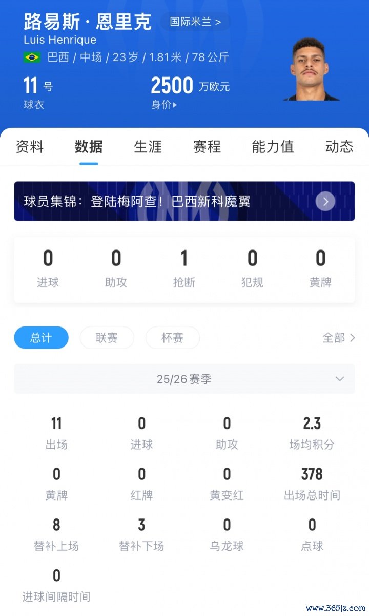 恩里克现年23岁,本赛季恩里克仅为国米登场11次共计378分钟,没有得分 和助功 ,球迷社区他现身价2500万欧,与国米的合同在2030年到期。