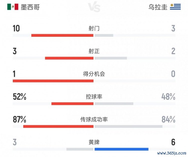 此役墨西哥射球 10比3占据优势,球迷社区不过两队都没有取得得分 ,最终0-0握手言和。
